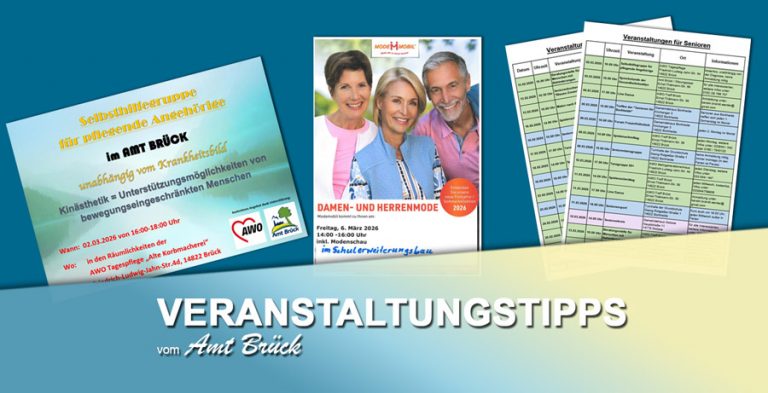 Folgende Veranstaltungshinweise bekamen wir von der Seniorenbeauftragten Frau Stephan (Amt Brück) mit Bitte um Bekanntmachung: Alle pflegenden