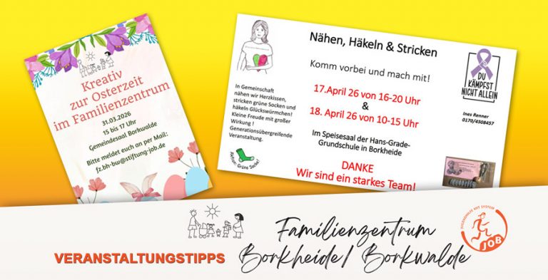 Von Sally Kuck, der Koordinatorin vom Familienzentrum Borkheide/Borkwalde, bekamen wir folgende Aushänge zur Veröffentlichung: Weitere Informationen finden