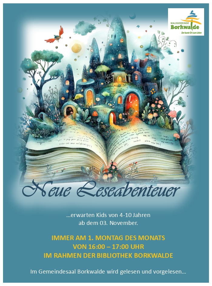 Im Rahmen der Bibliothek lädt die Gemeinde jeden ersten Montag im Monat zu Vorleseabenteuern für Kinder von 4-10 Jahren und ihre Familien ein. Wir machen es uns gemütlich und lauschen spannenden Geschichten. Kinder und ihre Familien können sich ebenfalls am Vorlesen und gemeinsamen Lesen beteiligen. Der Lesespaß steht im Vordergrund.
