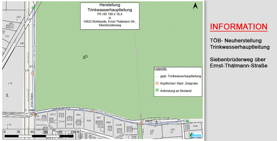 hiermit informieren wir Sie an der Maßnahme „Neuherstellung einer Trinkwasserhauptleitung im Siebenbrüderweg über Ernst-Thälmann-Straße, 14822 Borkwalde“.