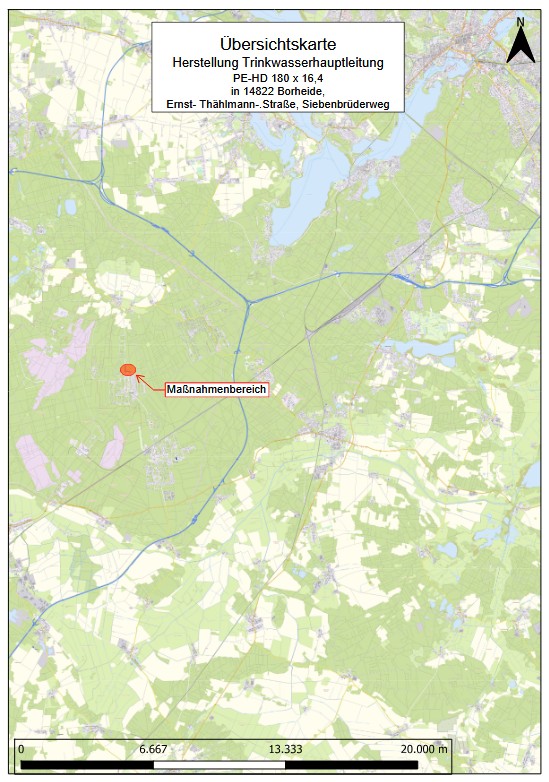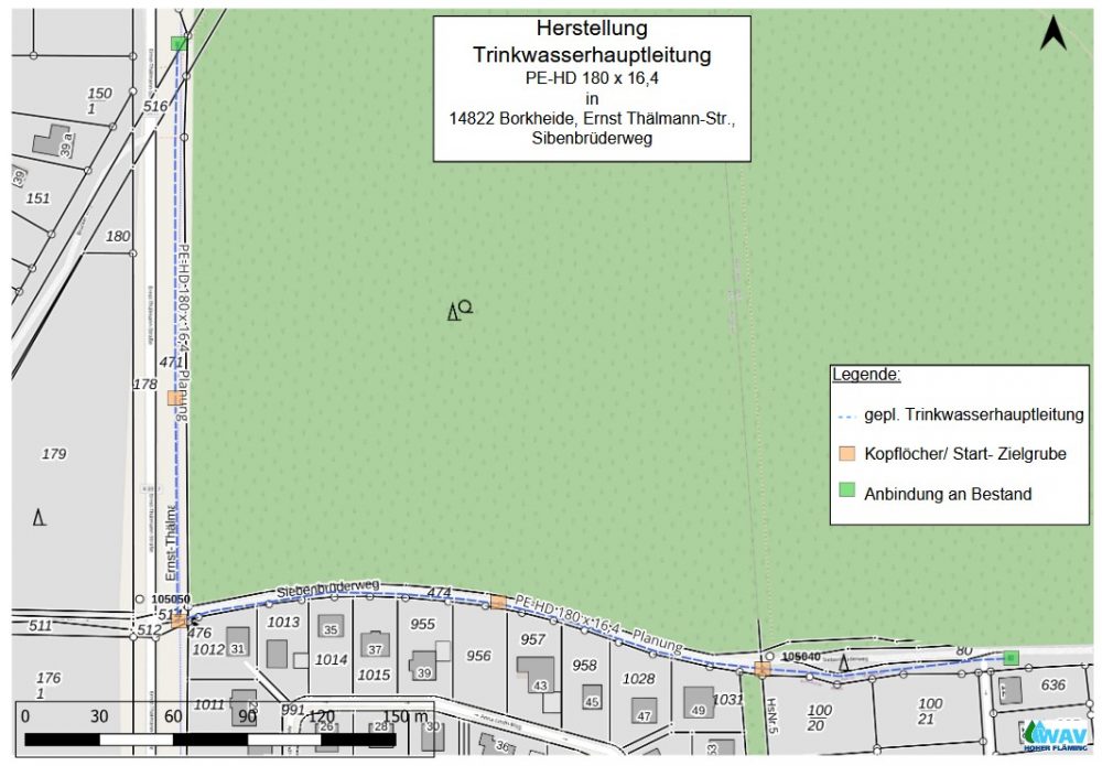 hiermit informieren wir Sie an der Maßnahme „Neuherstellung einer Trinkwasserhauptleitung im Siebenbrüderweg über Ernst-Thälmann-Straße, 14822 Borkwalde“.