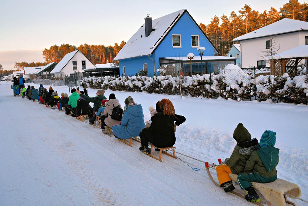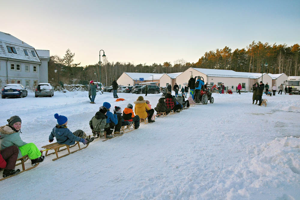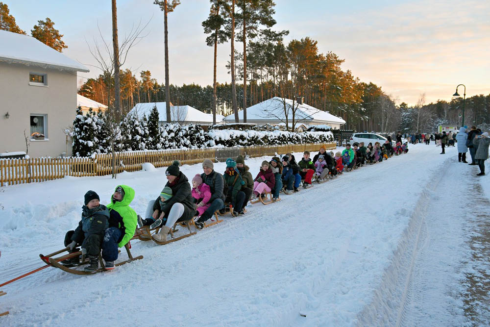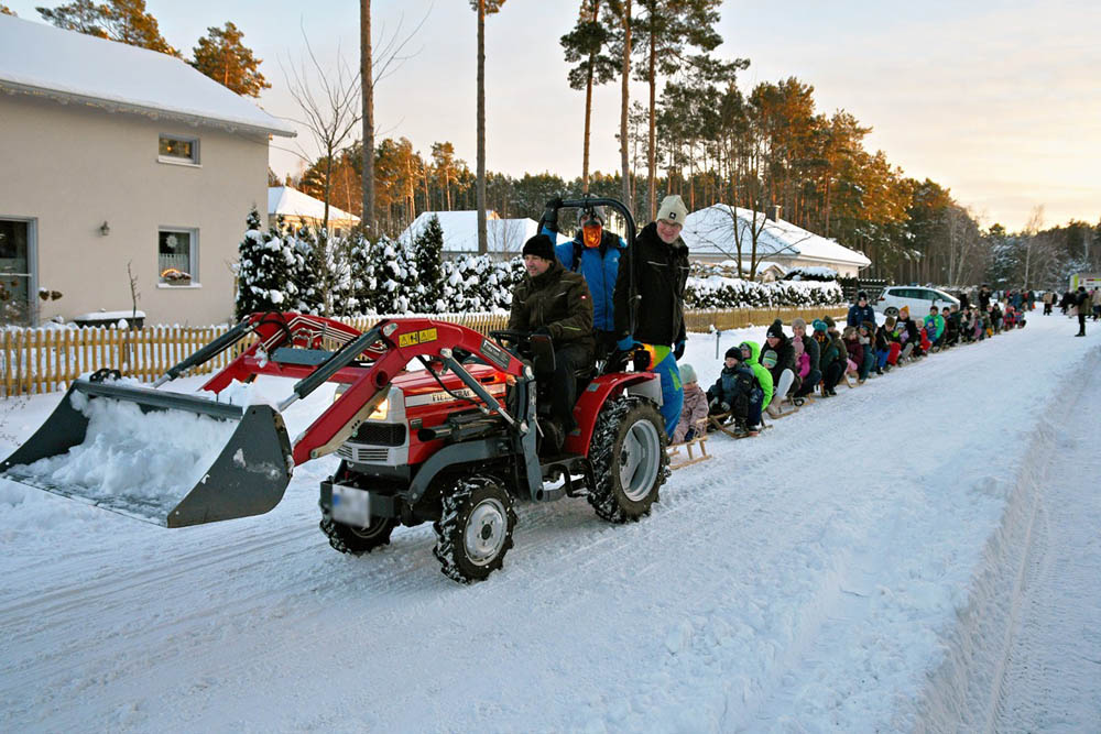 Bei der Schlittenpartie am Samstag mit dem Traktor Timo wurde ein Rekord in Borkwalde geschafft. 50 Personen fuhren auf einer mit 28 Schlitten aufgereihten Schlange. Insgesamt gab es ca 250 Teilnehmer, die auf mehrere Touren aufgeteilt wurden.
